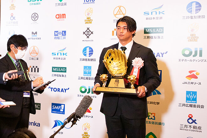 阪神・近本選手と並び今季最多の5年連続5回目の受賞を果たした楽天・辰己選手